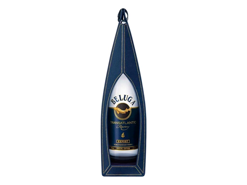 Dizajn fľaše jasne odráža morské motívy: Štítok je opatrený zlatou kotvou na tmavomodrom pozadí. Na hrdle fľaše je tiež lesklá zlatá rybka Beluga.