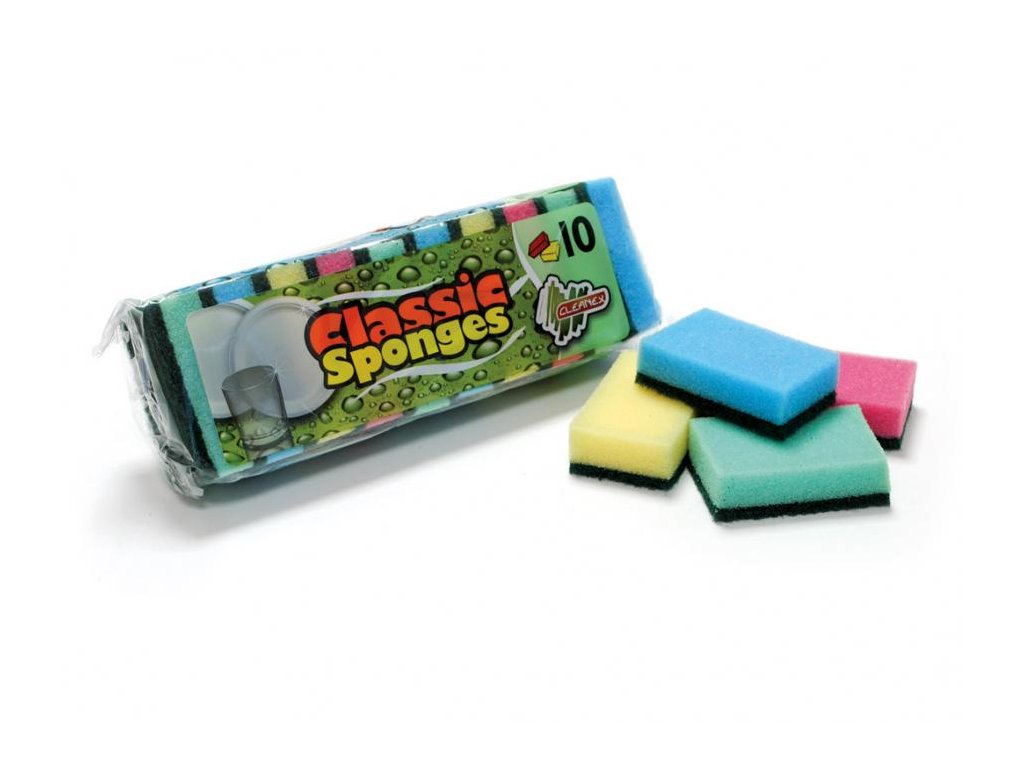 Špongia na riad 10ks/bal Špongia na riad do domácnosti ako aj do profi zariadení ako reštaurácia, verejné stravovanie, hotely a iné. Na jednej strane je abrazív a na druhej hustá kvalitná pena, ktorá má výbornú nasiakavosť umývacích saponátov. Rozmery: 8 x 5 x 2,5cm Farba: mix Balenie obsahuje 10ks.