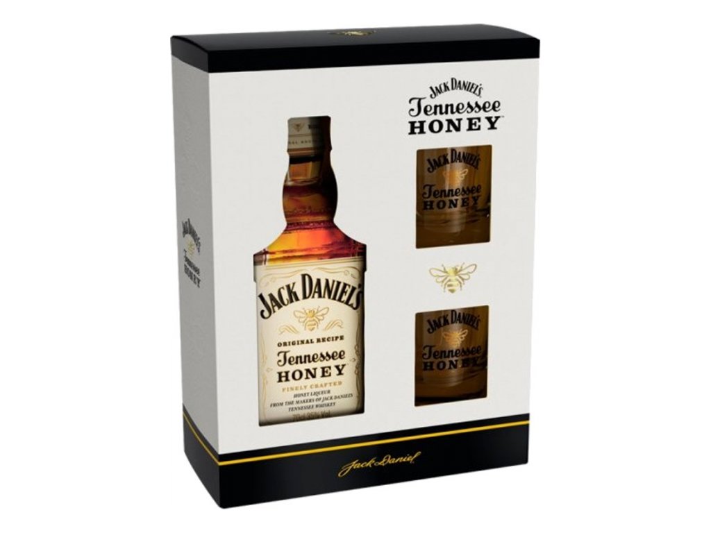 Jack Daniels Honey + 2 poháre gift pack 35%, 0,7l (kazeta)