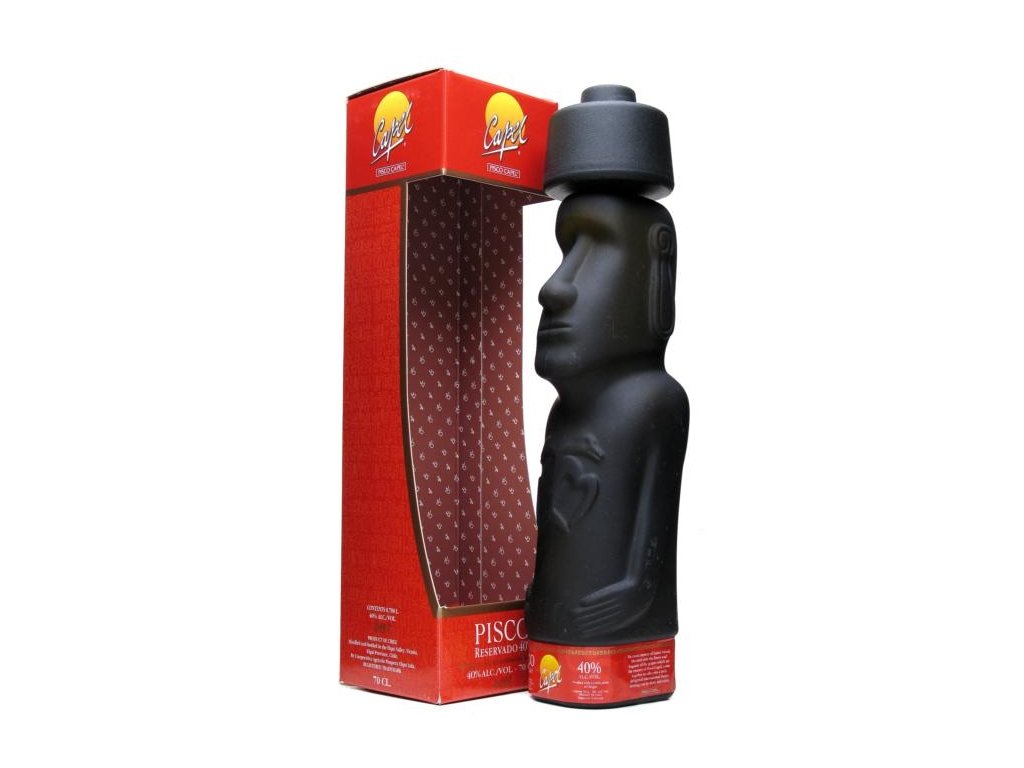 Pisco Capel Moai Statue je vyrábaný zo zmesi 30% hrozno Muscat a 70% hrozno Pedro Jimenez a Torontel. Vylisovaná šťava z ručne vybraného hrozna je fermentovaná a pomaly destilovaná s krištáľovou vodou z Álp. Zreje 5 mesiacov v sudoch z amerického dubu.Má lahodnú ovocnú chuť s jemným nádychom dreva. Perfektný produkt v dokonalej fľaši.